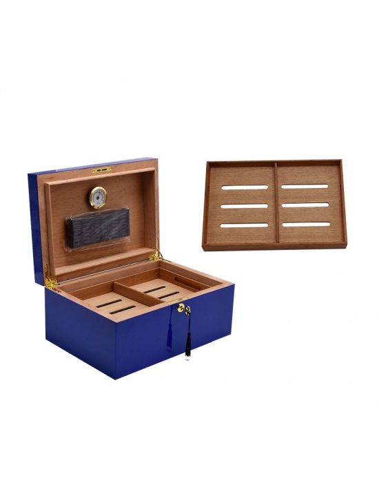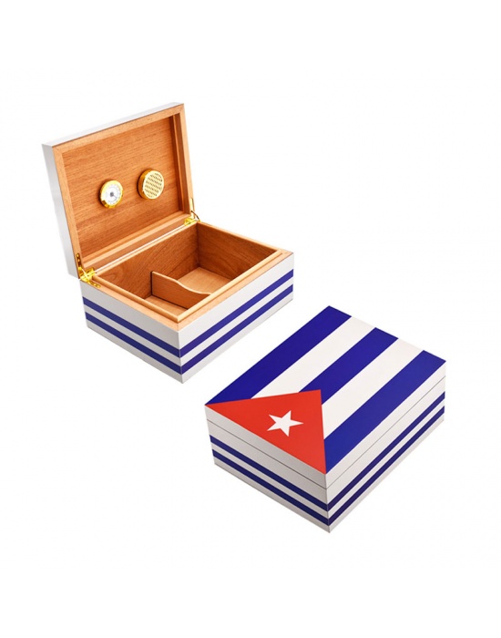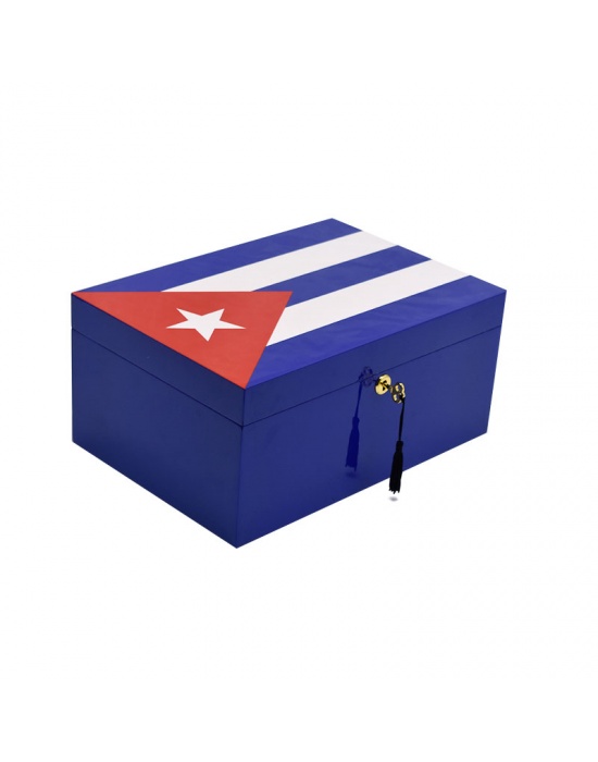 Cuban Flag Humidor Blue Gloss for 80 Cigars